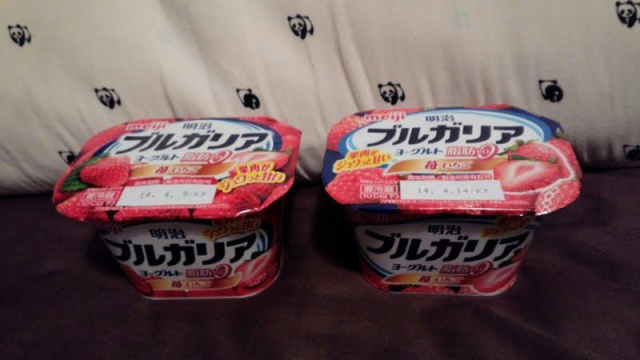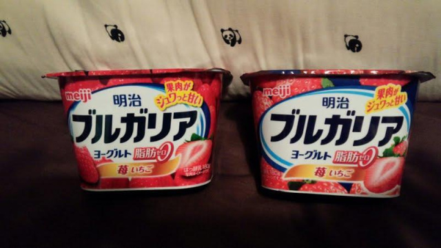 一見、何の変哲もない『明治ブルガリアヨーグルト苺味』が2つ。