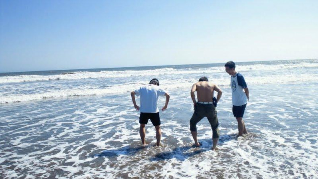 目立った渋滞もなく、予定よりもかなり早く着いたので九十九里の海で、ひと休み…ならぬ、ひと遊び[d146]笑