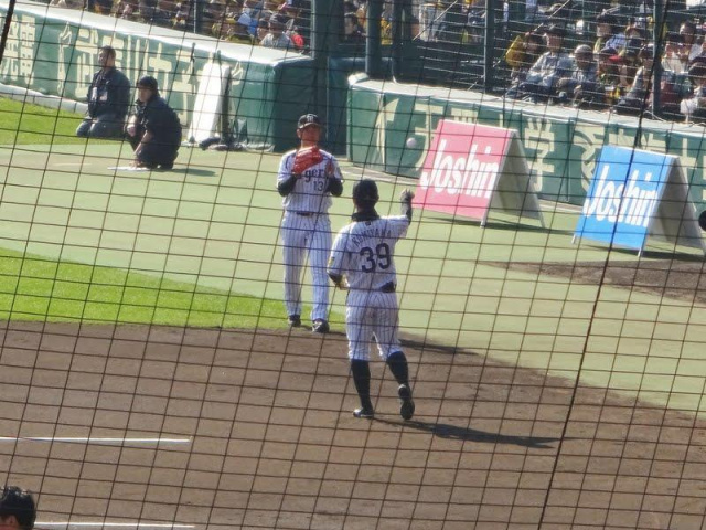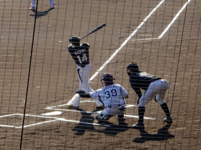 一昨年行ったときは外野の上段だったけど、今年はバックネット裏の下段で結構よく見えた。