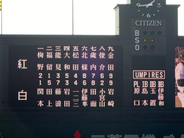最後紅白戦で今年で引退する久保田と日高がバッテリー組んで投げてた。