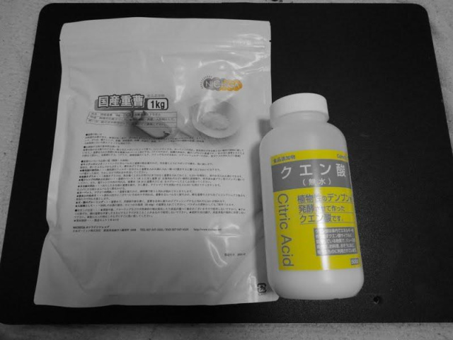 そこでなんとかならんかとたまにプレステージでサンプル動画見ながらいい加減に調べていたら”重曹とクエン酸で微炭酸水が出来る!”という情報を入手し、直ぐ様購入してみました。