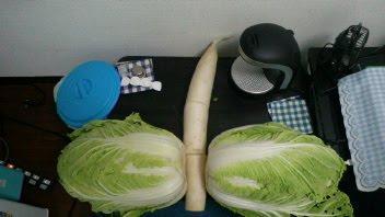 ちなみにこちら↓がサンタさんが持ってきてくれた特大の白菜と大根です。