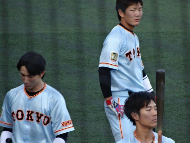 レフト高橋洸 ファースト坂口 サード岡本