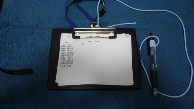 茶柱は一人でレポ屋する時はデジカメに1脚を取り付けたものと、首にかけた小さいバインダーにメモをとりながら撮影します。