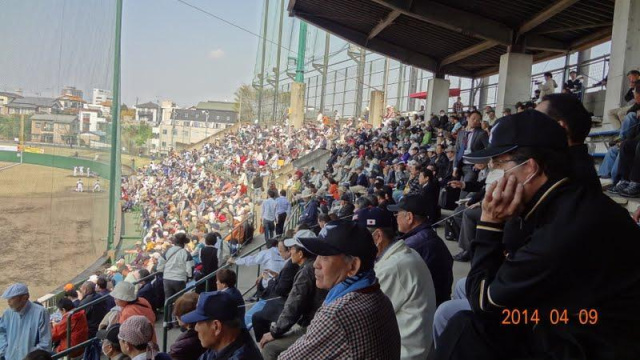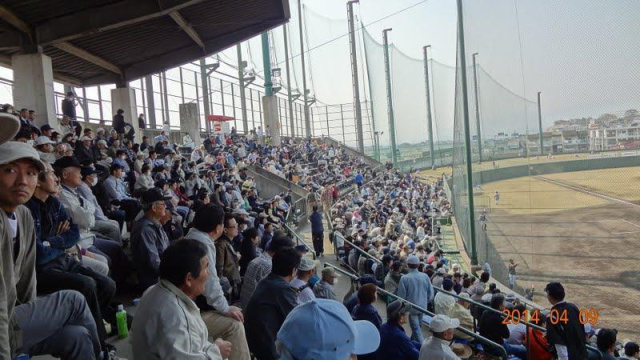 茶柱はこの日、試合開始3分前に着いたのですが、いつもG球場で見ている独立リーグとの交流戦のイメージがあったので、正直、客席は余裕で空いていると思ってました。