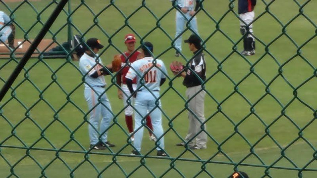 ファーストで出場の坂口は一回に緩慢な守備をしてしまい即、懲罰交代させられました。