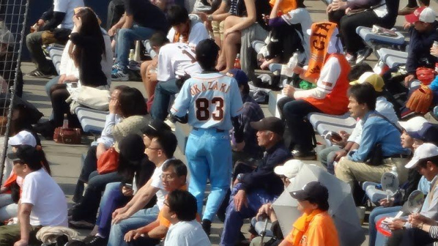 ”コカザキさん”は全身を大好きな岡崎二軍監督のユニフォームでコーディネートした方で、G球場に行くと結構な頻度で目撃する、名物的な御方なのです。