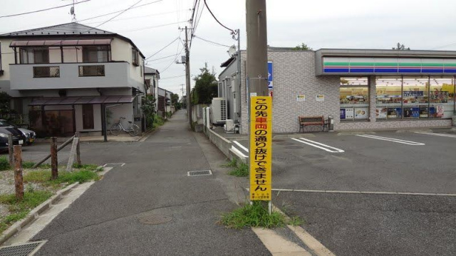 目の前には見覚えのある梨の直売所と右側にはコンビニのスリーエフが見えます。