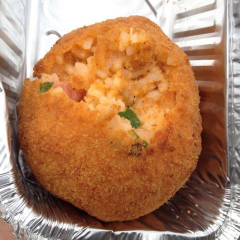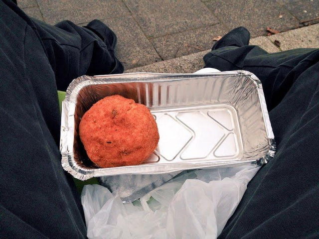 やっと見つけたイタリア料理店!ドイツ語の本を片手に意を決して入る。通じない… 指差しと身振り手振りでなんとか通じ合う。その結果わかった。この店は18時から営業だ…∑(゚Д゚) しかし、この近くにランチできる店なんかないのだろう。見かねたお母さんが仕込み中だったなにやらを1個4ユーロで売ってくれた。