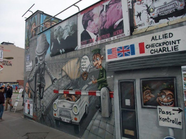 まずは定番。ベルリンの壁が残っているイーストサイドギャラリーへ。東西を冷たく分断していた壁は。いまはアートの壁に生まれ変わっていました。