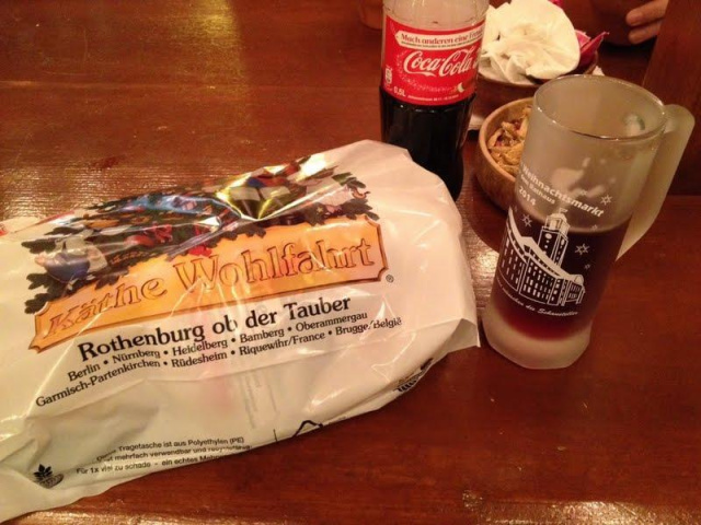 このグラスを返すと2ユーロ返金されるんですが、4年前にも持って帰ったっけなぁ。今回も記念に持って帰ろー(*^^*) グリューヴァインの素がTパックみたいになってるものがあるらしく、それをおみやげに買えれば家で妻と乾杯できます♪