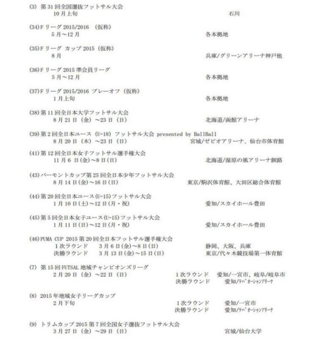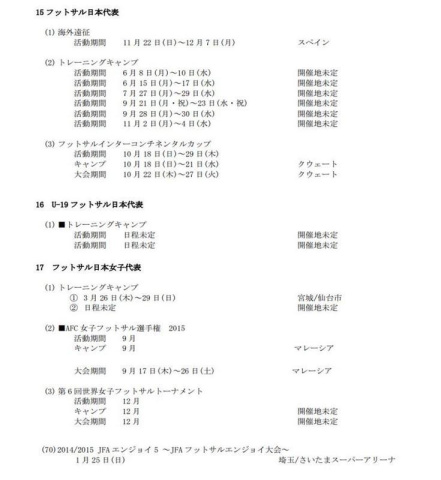 JFAの2015年度事業計画からFリーグ他のフットサルイベントを抽出してみました。