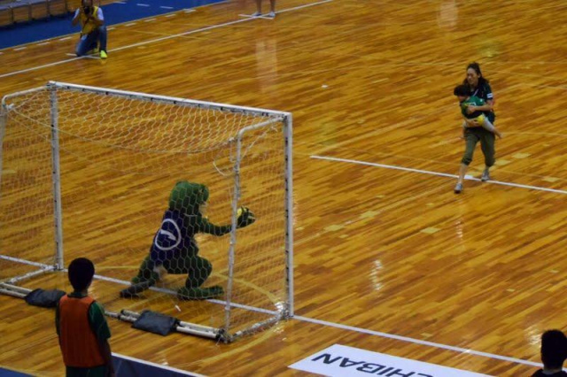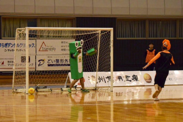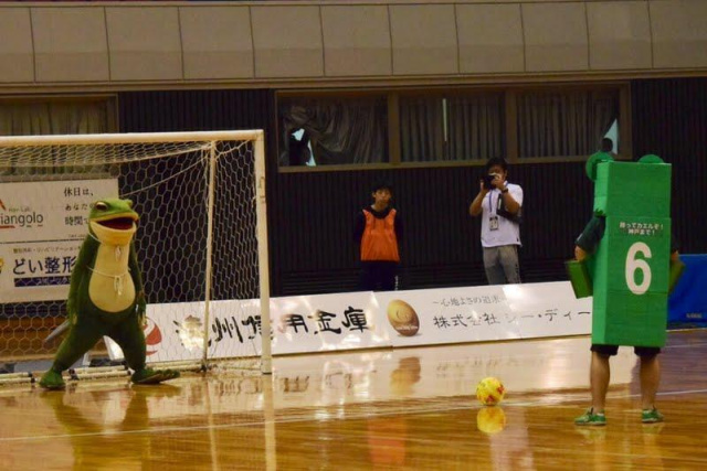一平くん、Fリーグのピッチに降り立つ!スペシャルイベント、サポーターPK対決に浜松側のゴレイロとして参戦!