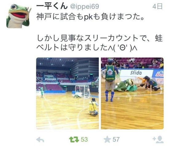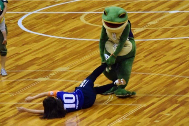 一部サッカーファンの間では超有名な、あの蛙の一平くんが浜松アリーナへやってきた!!この日の観戦記前編では場を大いに盛り上げた一平くんにフィーチャーします。