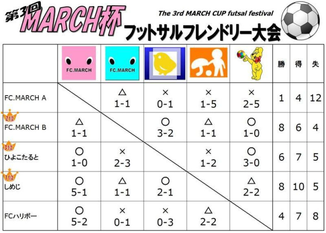 【結果速報】第3回MARCH杯フットサルフレンドリー大会、無事終了!