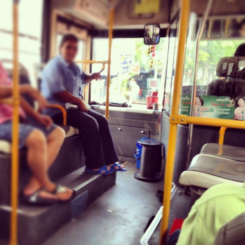 庶民の足であるバスは行き先もタイ語表記のみで観光客にはちょいとハードル高し…