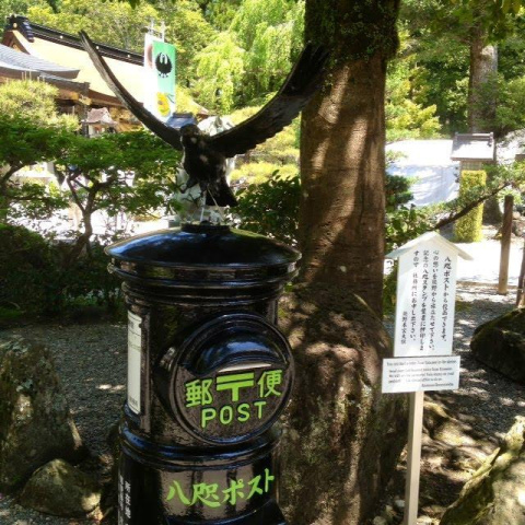 真っ黒な八咫烏ポストから、お互いとなかなか会えない大阪の祖母に絵葉書を出してみました。