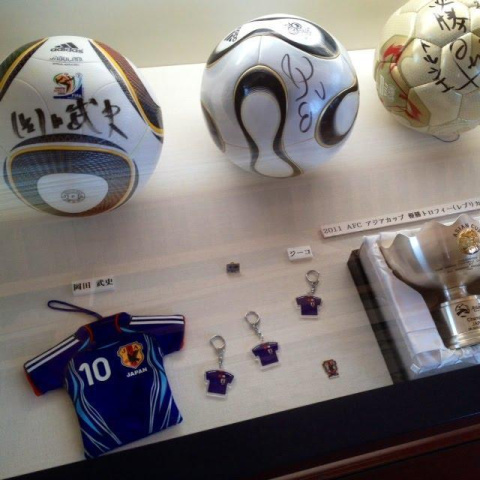 資料館には八咫烏繋がりでトルシエ、ジーコ、岡田の歴代日本代表監督サイン入りボールや、