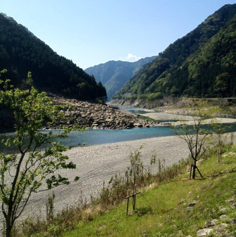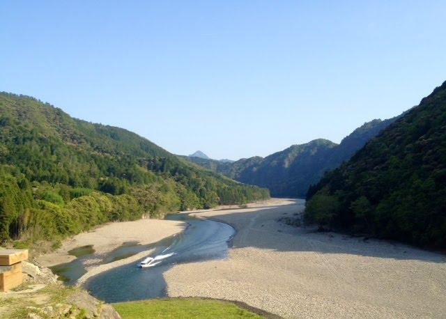 気持ちのいい青空のもと、熊野川を遡り熊野本宮大社を目指します。
