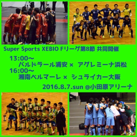 Fリーグ第8節は湘南と浦安の共同開催!湘南は大阪と、そして浦安は浜松と対戦するというなんとも「俺得」な1戦o(^▽^)o 8/7(日)はみんなで小田原アリーナに駆けつけましょう!!