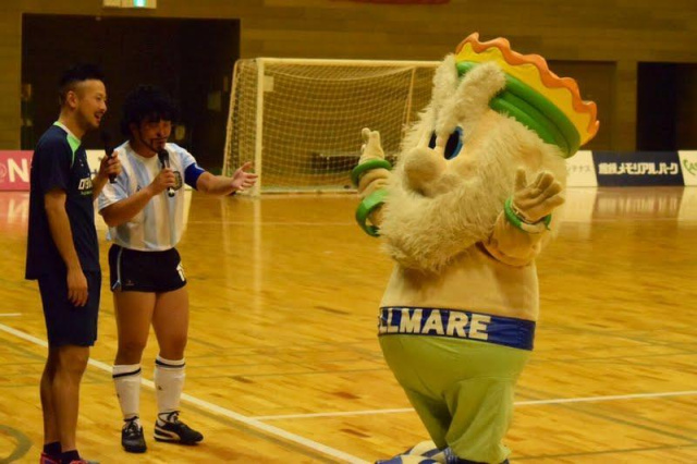 この日はキングベルも来てくれました。8月13日に平塚で、FとJの試合が初めて同日同会場開催されるのでそのアピールに!そしてその日の対戦相手はなんとアグレミーナ浜松なんですね〜。フットサルをまだ生観戦したことないサッカー湘南ベルマーレサポーターのみなさん、この機会にぜひFリーグも観てみませんか!?