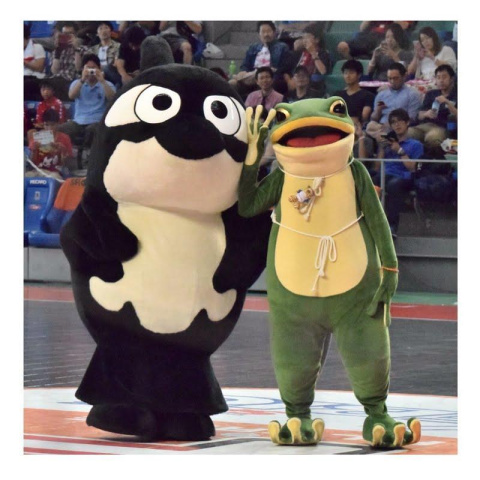 一平くんとグランパスくん。ゆるきゃらPK対決はグランパスくんの勝ちでした。
