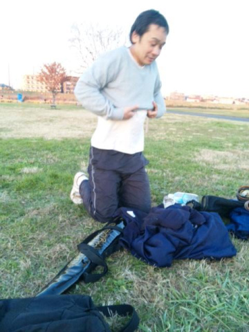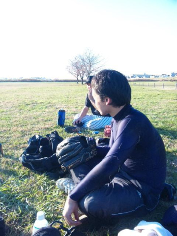 13時から にくハルとキャッチボール それと私のキャッチャーでのキャッチング練習やりまして、そのあと自分がノッカーで 外野フライ練習しました。