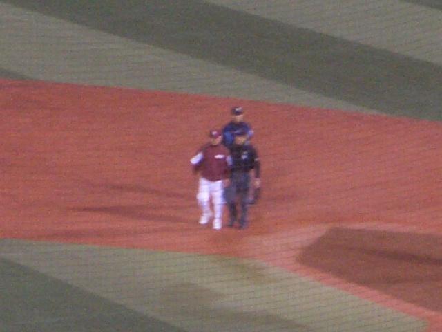 鉄平内野安打をパリーグ塁審秋村アウトの判定。野村監督抗議実らず。