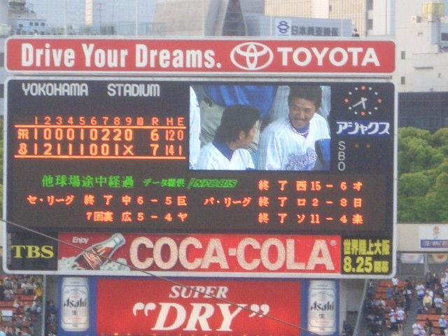 8裏 ウィリアムス。1アウト明らかに狙ってた村田がライトスタンドにソロ。7ー6。こういう場面づホントよく打つ。お立台狙いか?