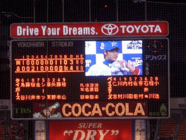 先頭相川7前、下窪に代わった小池犠打、仁志進塁打、代打尚典4ゴロ…