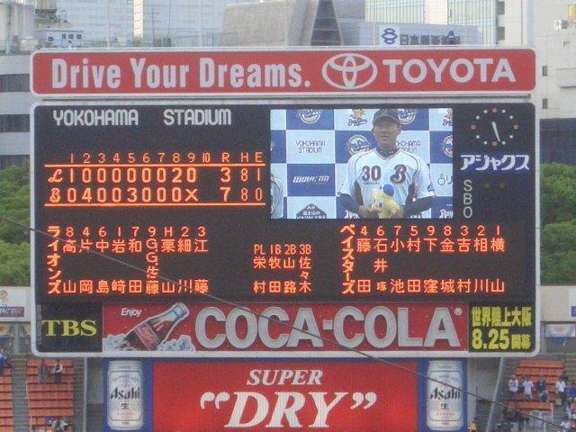横浜 0 4 0 0 3 0 0 0 X 7 8 0
