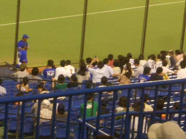 7表 吉村レフトスタンドへ2打席連続ソロ!2ー1! 読売戦後で大目玉食らったのが効いたみたいだ。2アウトから相川8前、寺原9前!仁志7前で3ー1!しかしラミちゃん前進で速い打球を返球3塁まででは…先日も読売戦で2塁からのタッチアップを許したし。頑張れナイスガイのラミ!