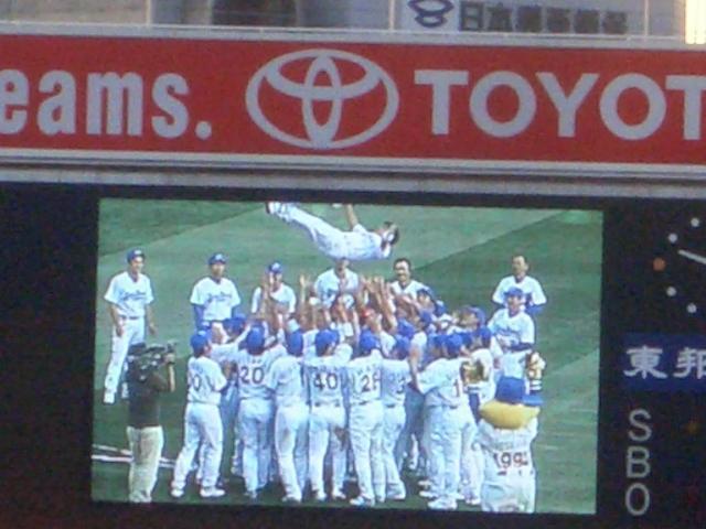 監督もホーム最終ゲーム。豆級ファンだからまだ3年目ですが、これですでに2人の監督胴上げ(大ちゃんのときも最下位)を見ています。
