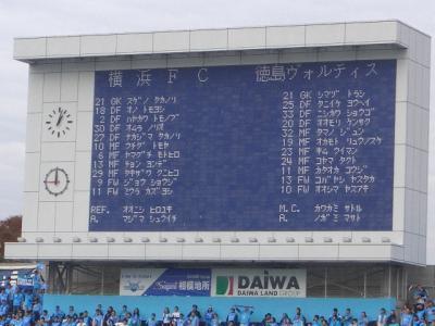 とりあえず0−0でしのぎ、後半は逆に横浜ペース。後半5分過ぎから怒涛の攻撃、さらに10分過ぎからカズと交代でアレモン投入。何度もコーナーのチャンスがあるも、なかなか決定機を決められず。