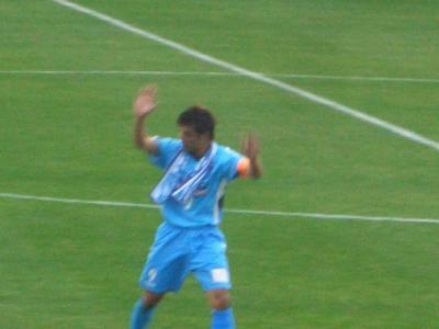 結局彼は得点機ものがすはPKチャンスを2度とってもらえなかったりで終了時のホイッスルが鳴ってからボールを場外へ蹴りだしてた・・・気持ちはわかりますが、そっちは人が住んでますから・・・