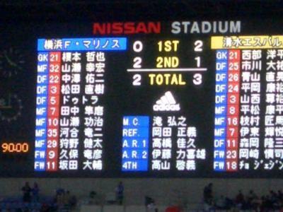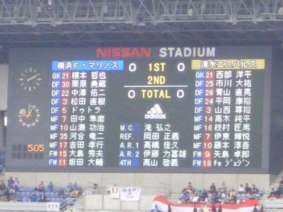 ホームとアウェイが逆のようだ。前半2−0で折り返し、これは楽勝かと思いきや、後半から横浜の動きが良くなり、ホームらしいゲーム運びに。はじめからやっていれば・・・1−2となり、勢いと時間帯から、このまま逆転されるだろと感じられた。すぐに2−2になり、勝ちは考えにくい状況となったが、ワンチャンスを清水が物にする。