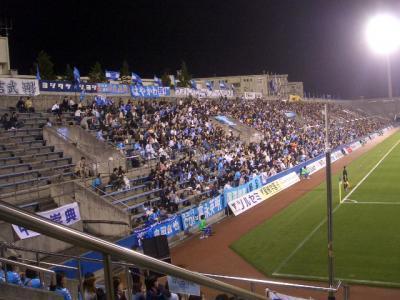 三ツ沢はいつ来てもいいなぁ。トラックがないから臨場感がたまらない。個人的には日産スタジアムより好き。ほのぼのしてるし。