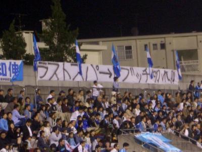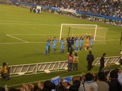 バックスタンドでもみんな手拍子。去年はそんな人ほとんどいなかったのに、昇格がかかってるから? けどこれだけの人が来てくれてるのはうれしいなぁ。本当にうれしい。横浜市民ってサッカーはほとんどの人がマリノスだし、野球はなぜか阪神だし。まあぁ自分ももっと来いよって感じですが。