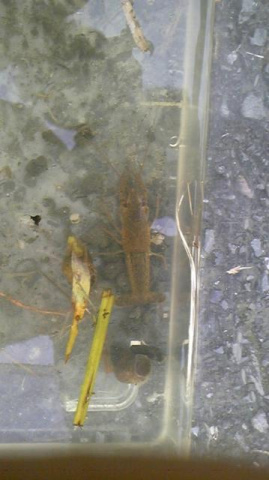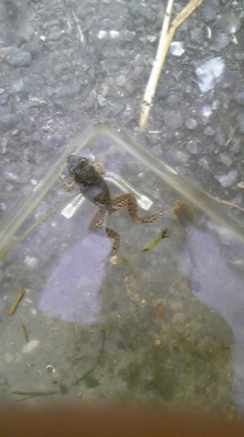 カエルとザリガニをゲットしました。父親、母親、じいちゃん総出で子供そっちのけで大騒ぎです!