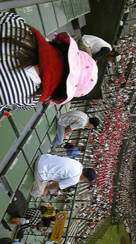 娘が赤い応援団の近くに行きたいというので1塁側あるぷすの近くへやってきました。赤いタオルを首に巻いて自分も応援団のつもりです。
