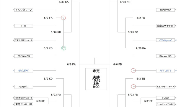 今シーズンの最初の公式戦となる川崎市民トーナメントの日程がでました!