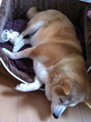 このあと無理矢理起こして散歩に連れて行きました。
