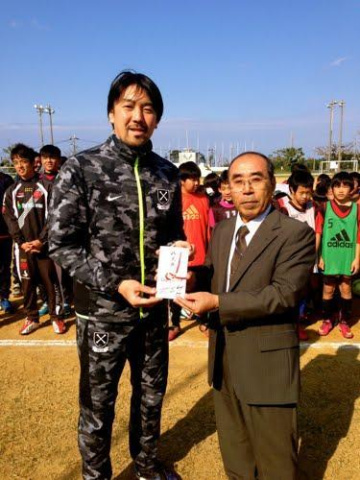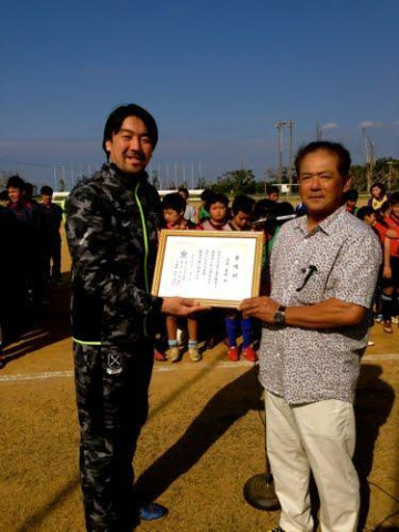 与論島教育長殿へ義援金を。