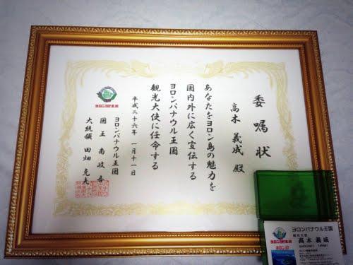 そして、このたび私『与論島観光大使』に任命していただきました。