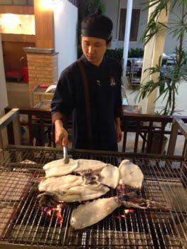 明日はオフという事で、今日のディナーはプールサイドでBBQ的な。