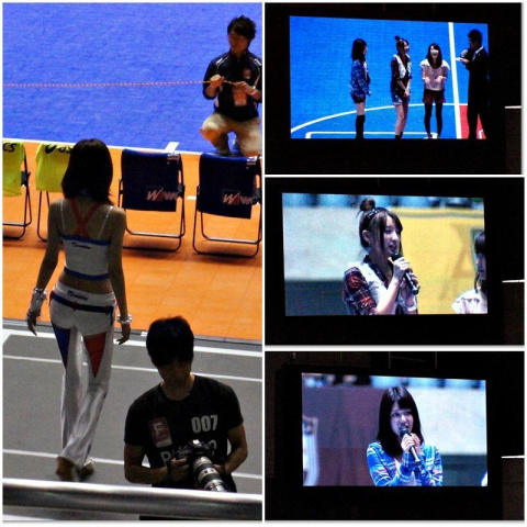 何とか素人のアイドル3匹が出て来て、試合を盛り上がろうって言って、姿を後にしました。でも、やっば一番目立つのはゼリー状の飲み物の業者さんのコンパニオンさんが足が細くてSTYLEが良くてキリンみたい