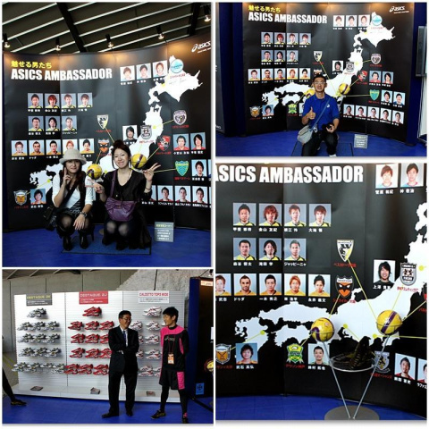f-leagueの地図の前に記念写真を