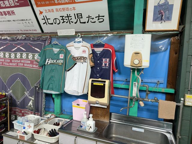 店内は北海道日本ハムの歴代ユニフォームが飾られているコーナーも有りで、