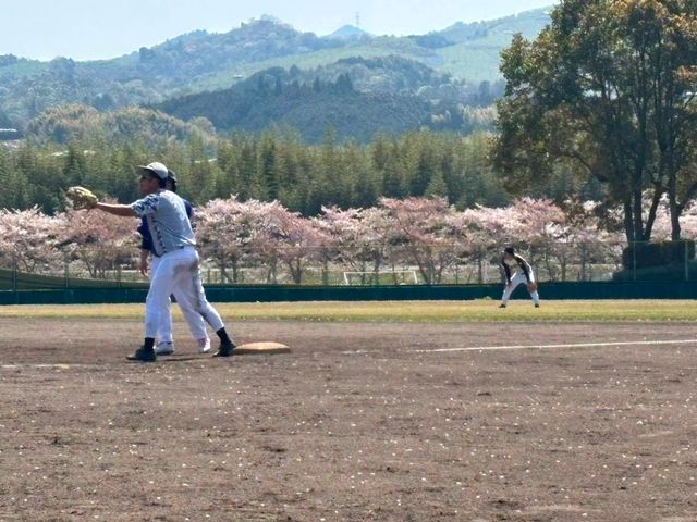 桜が咲き誇る球場 こんなにも景色が綺麗な所で野球できるのは素晴らしい