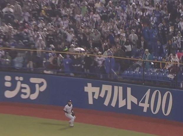 1死一、二塁のピンチで、打者・川端の打球は右翼後方へライナー性の飛球となった。